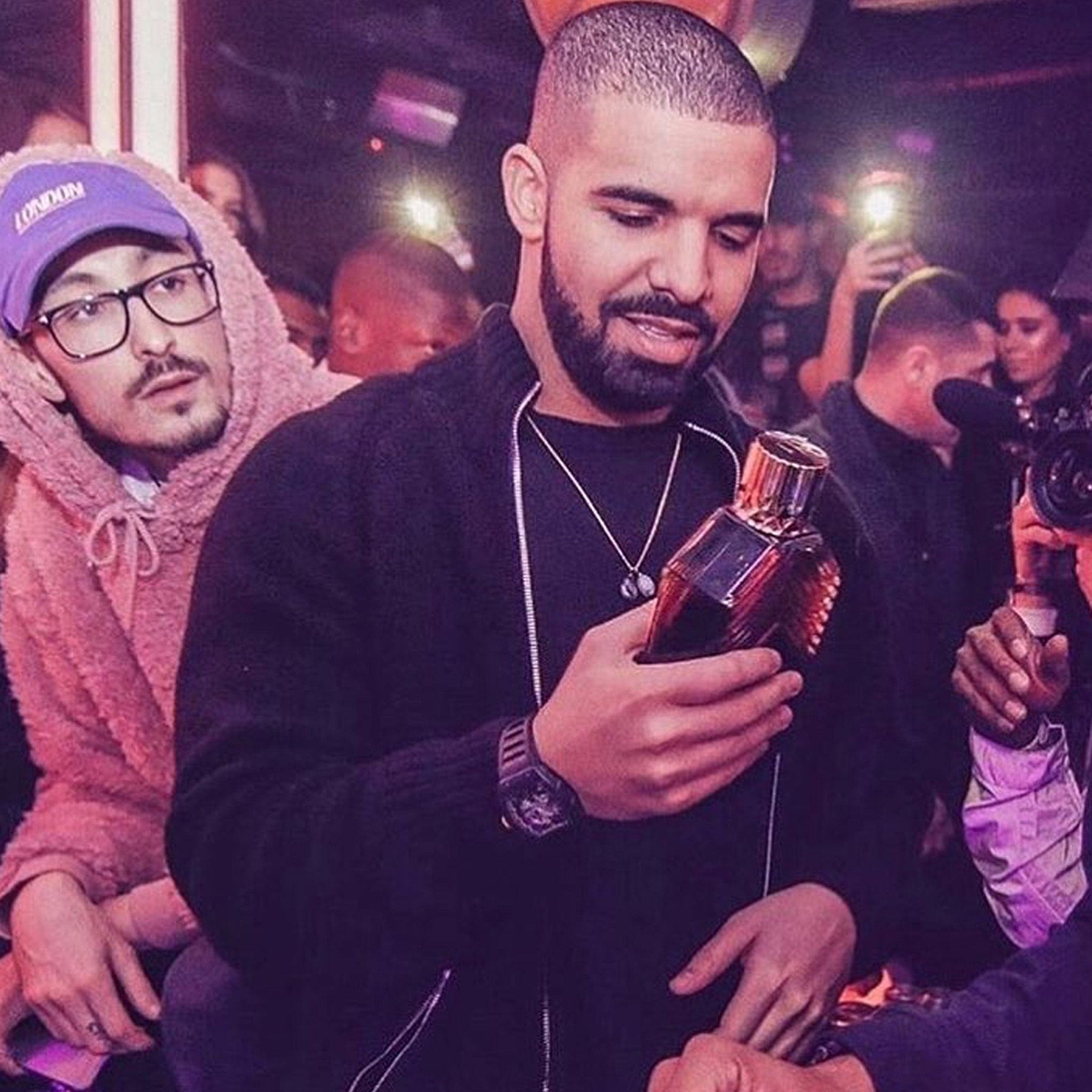 Originally launched in 2016, Virginia Black was the outgrowth of a meeting between world-famous entertainer Drake and luxury liquor mogul Brent Hocking. Drake was looking to expand his brand into new terrain, and Hocking had previous experience working in the beverage space with his prior product DeLeón Tequila. After a couple of years of friendship and discussions, the two men realised that they could bring whiskey to a new audience, beyond traditional whiskey fans. The end product of Drake's new whiskey collaboration with Brent Hocking was Virginia Black; a personally selected collection of two, three, and four-year-old bourbon whiskey focused on a high-rye content and finished with a decadent profile.